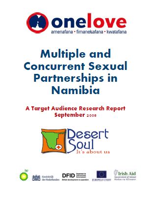 This 34-page report documents a study, conducted by the Desert Soul Project in Namibia, that aimed to inform effective communication interventions around multiple concurrent partnerships (MCP). The research covered numerous topics, including the types of relationships people engage in, reasons for involvement in multiple concurrent partnerships (MCP), reactions to unfaithfulness, communication (or lack thereof) between sexual partners, the role of migration in MCP, and perceived health risks associated with multiple partnerships. According to the study, participants identified many reasons for engaging in MCP, and showed awareness of MCP as high risk for different diseases, particularly HIV. However, male participants also remarked that one cannot stop men from having other partners, and women also admitted to engaging in MCP.