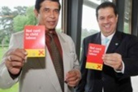 Working hand in hand with what IPEC characterises as "the world's most popular sport", the campaign uses what is mean to be a potent symbol: the red card that means "you're out of the game." The hallmark of the campaign is the engagement of high-profile athletes and advocates, who seize on the attention and media coverage generated by major sporting events. For example, the launch event featured representatives of ILO social partners, President of the African Football Confederation (AFC), and President of the Federation Internationale of Football Association (FIFA). Similarly, in honour of the 100th anniversary of "The Real Madrid" (December 2002), Red Card generated strong media participation in Europe and the involvement of celebrities of the Madrid football club, who disseminated information on child labour issues.