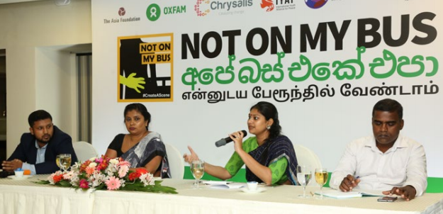 At a December 2018 sense-making and campaign-planning workshop, the norms identified in the formative research were ranked and prioritised; the central focus of the multilingual campaign (in English, Tamil, and Sinhala) is breaking the norm that bystander intervention will not help, or that it will further exacerbate the issue, as well as the norm of placing the responsibility of action solely on the survivor. The campaign was given the name "Not on My Bus" and the slogan "don't ignore sexual harassment: #CreateAScene".