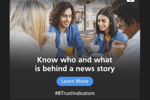 - The Trust Project executed a collaborative ad campaign on Microsoft platforms with 3 other organisations, offering ads with news literacy messages based on the 8 Trust Indicators®. Public ambassadors spread these messages, including the idea that we each play a role in a healthy news environment. The ads led to a quiz and interactive Trust Indicator page. Exposure to the Trust Indicators® achieved a 60% increase in participants' confidence to assess the reliability of news.