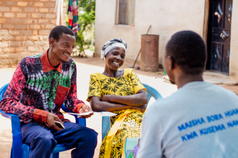 Posting from Claire Gillum to IBP Global on September 20 2022; email from Claire Gillum to The Communication Initiative on September 22 2022; and FHI 360 website, NAWEZA: An Integrated Social and Behavior Change (SBC) Strategy to Engage and Support Adult Audiences to Take Action for their Health and Wellbeing [PDF], June 2020, USAID project description [PDF], January 2019; Population Reference Bureau website; and Toward Shared Meaning: A Challenge Paper on Social and Behavior Change and Social Norms, Institute for Reproductive Health, The Social Norms Learning Collaborative, June 2021 - all accessed on September 21 2022. Image caption/credit (top): A couple in Sengerema Region talk with a NAWEZA volunteer during a timed household visit. USAID